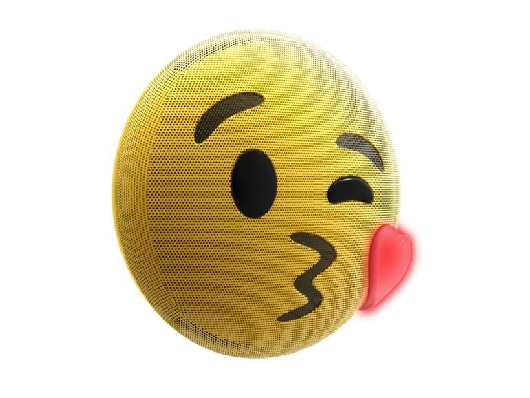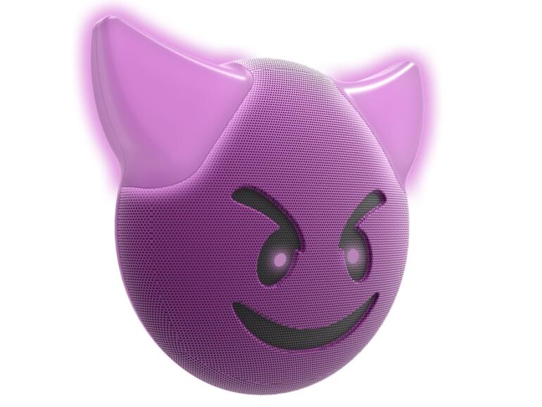 Es ist eigentlich ein Wunder, dass nicht früher jemand auf diese Idee gekommen ist: Emojis als Lautsprecher. Vor einem Jahr brachte der Hersteller Jam eine erste Auswahl der originalgetreuen Kommunikationssymbole als Bluetooth-Lautsprecher-Serie Jamoji auf den Markt, nun folgt eine zweite Reihe. Neben einem Herz ("Heart") sind dies das Tränen lachende ("LOL") und das Herz küssende Emoji ("Kiss") sowie das lila Teufelchen mit hellen Hörnern ("Trouble").
