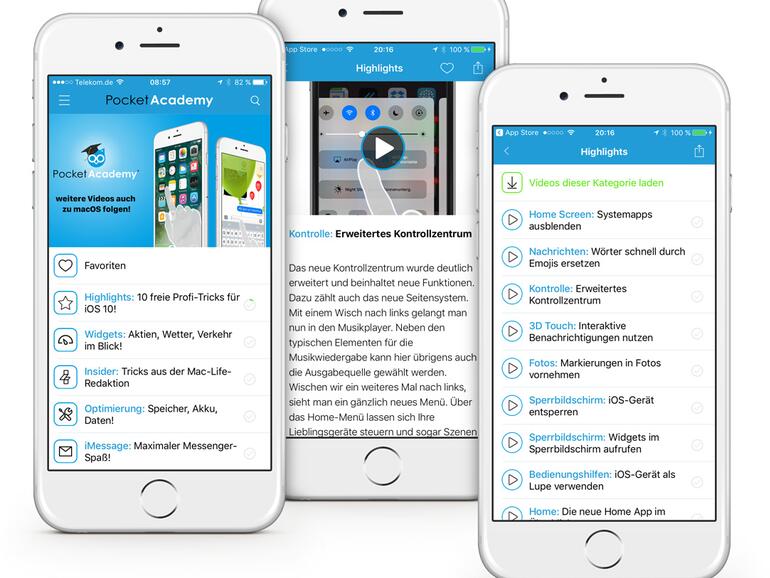 Die neue Pocket Academy enthält viele Tricks zu iOS 10 – noch kompakter und schneller erklärt als je zuvor und inklusive wertvollen Tipps zum brandneuen iPhone 7 und iPhone 7 Plus. Dazu setzt das Team hinter der Pocket Academy auf Video-Tutorials direkt auf dem iPhone-Display – neue Funktionen werden dabei so dargestellt, als würden diese live von einem Freund erklärt.