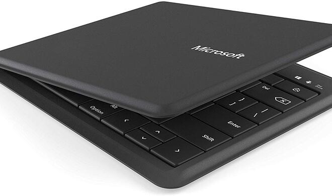 Ungewöhnlich aber praktisch ist das Microsoft Universal Foldable Keyboard. Die Bluetooth-Tastatur ist ein vollwertiges Keyboard, das durch Falten stark zusammenschrumpft und mit einer Abmessung von nur 12 x 15 cm in die meisten Taschen passt. Mit rund 200 g ist es zudem kaum schwerer als ein Smartphone.