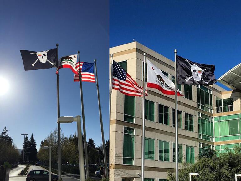 Auf den Tag genau vor 40 Jahren wurde Apple gegründet und hat sich seitdem von einer überschaubaren Garagenfirma zu einem Weltmarktführer im Technologie-Bereich entwickelt. Zum Ehrentag hisste man daher heute die Piratenflagge am aktuellen Hauptquartier in Cupertino, das bald abgelöst wird. Die Flagge kommt nicht von ungefähr, sondern wurde vor über 30 Jahren erstmalig vom ursprünglichem Entwicklerteam des Macintosh gehisst und sollte für die rebellische Arbeit stehen.