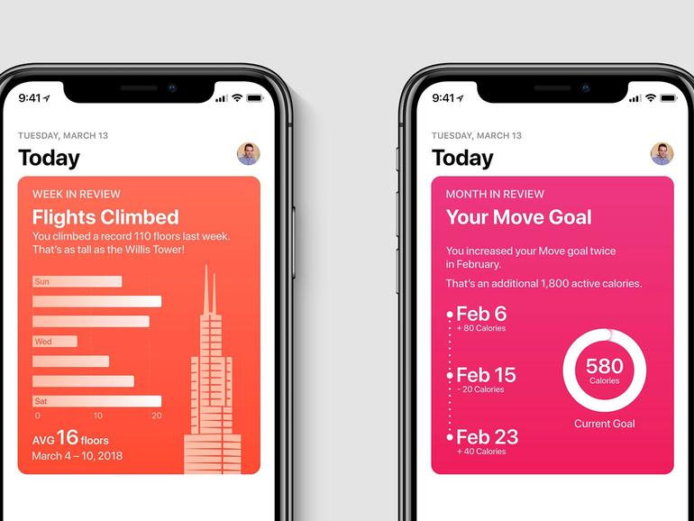 Damit Sie stets den Überblick behalten, könnte Apple attraktive Wochenübersichten gestalten, die Ihre Leistungen in interessante Verhältnisse setzen. So könnten Sie etwa in der Woche einhundert Stockwerke gelaufen sein, was ungefähr der Höhe des Willis Towers in Chicago entspricht. Daneben können die Übersichten helfen, auftretende Probleme frühzeitig zu erkennen und diese entsprechend zu bekämpfen.