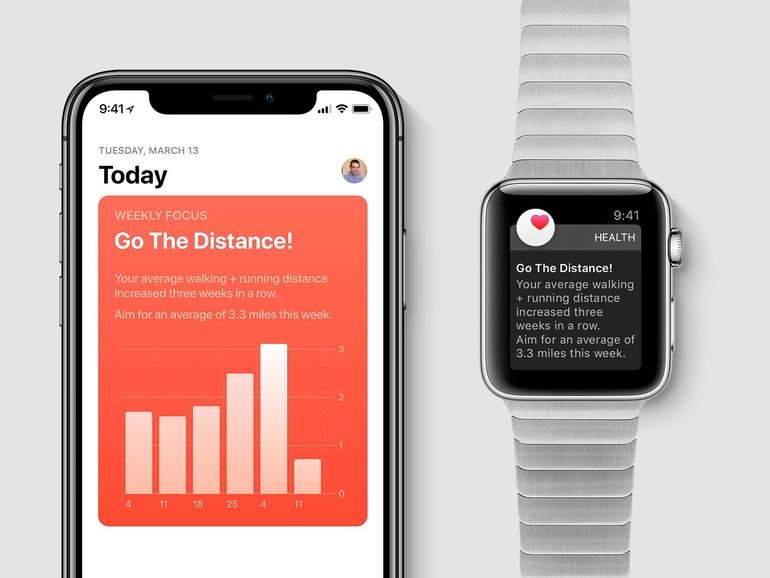 Eine große Chance sieht er hier etwa in einem Heute-Tab, welches bereits im App Store oder als „Für dich“ in Apple Music zu finden ist. Wie schon im App Store könnte man in der Heute-Ansicht etwa täglich wechselnde „Karten“ anbieten, Diese stellen Ihnen beispielsweise Tagesaufgaben oder versorgen Sie mit unterschiedlichen Ernährungs oder Fitness-Tipps. Daneben ließen sich auch Monats- oder Wochenziele einpflegen, die immer wieder neu motivieren.