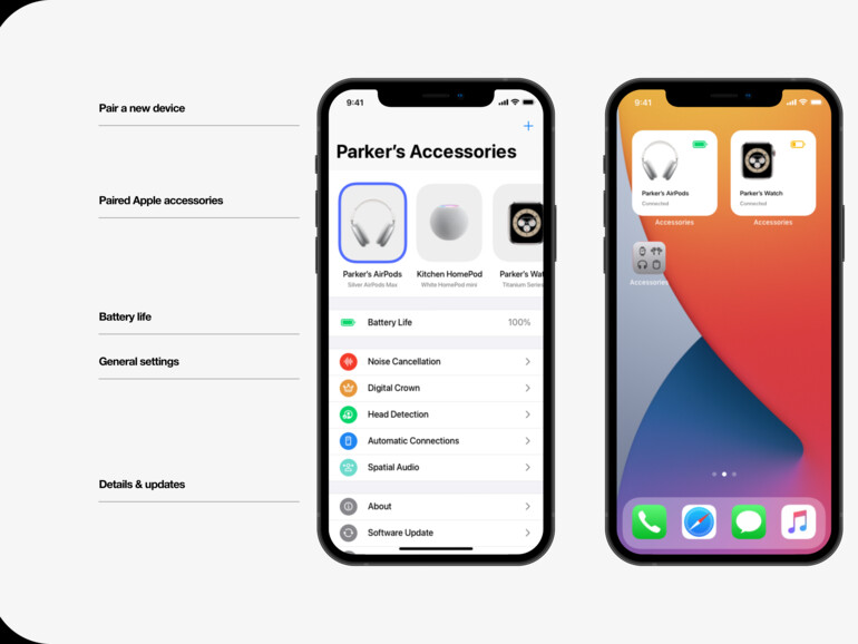 In einem Konzept zeigt der Designer daher nicht nur Möglichkeiten für neue Widgets, sondern auch eine einfache Lösung, um das Zubehör zu verwalten. Ihm zufolge sollte dies nicht erst in der App anfangen, sondern auch bei der Einrichtung, die schon jetzt bei den AirPods sowie den HomePods sehr gut gelungen ist, da ein Popup auftaucht, sobald sich ein neues Gerät in der Nähe befindet. Dies könnte man für weitere Produkte übernehmen und damit den Kopplungsprozess deutlich vereinfachen.