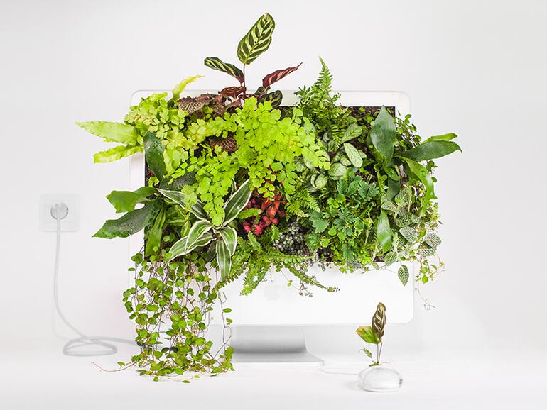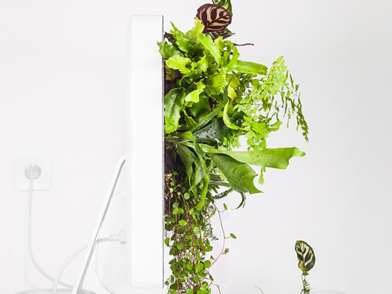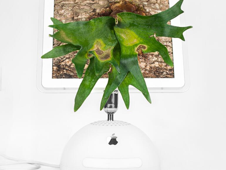 Erkennen Sie den iMac G5 hinter den ganzen Pflanzen? Auch das 12 Jahre alte Gerät wurde von Monsieur Plant in eine Macplant umgewandelt
