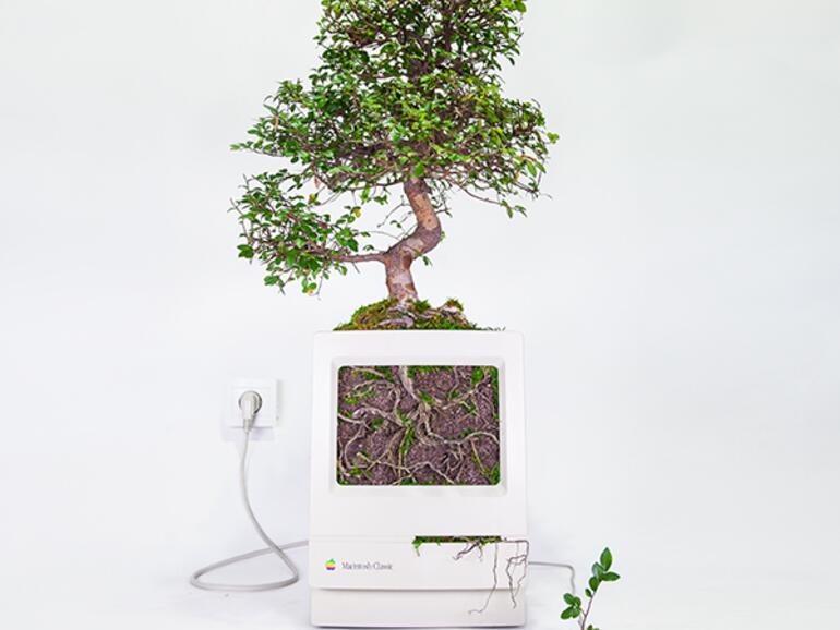 Den Macintosh Classic von 1990 hat „Monsieur Plant" geschickt umgenutzt. Das neue Modell heißt übrigens Macbonsai.