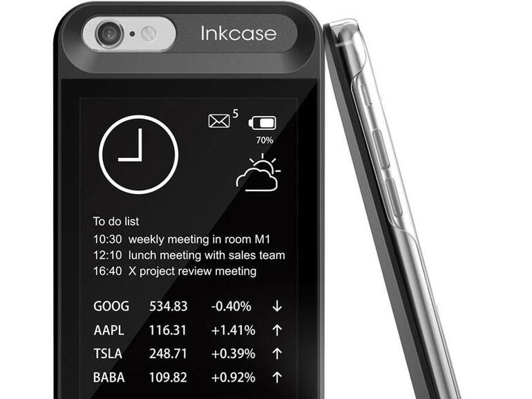 Das Oaxis inkCase i6 kommt dem am Nächsten. Es ist eine Hülle für das iPhone 6, das auf der Rückseite über ein 4,3-Zoll E-Ink-Display verfügt. Es wird per Bluetooth mit Ihrem iPhone verbunden und ermöglicht den Zugriff auf deine Inhalte, ohne das iPhone-Display nutzen zu müssen und schont somit den Akku.
