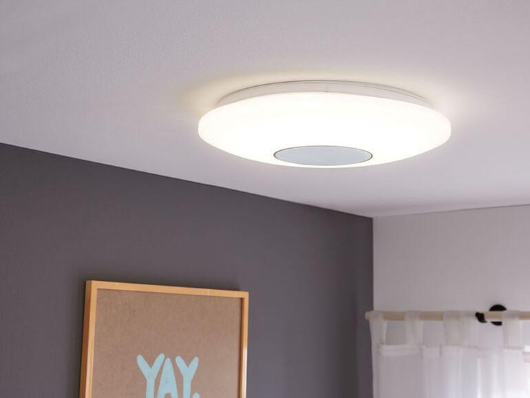 Die Livarno Lux von Lidl ist ein Bluetooth-Lautsprecher zum kabellosen Musikgenuss, der in einer dimmbare Leuchte mit blendfreiem, warmweißem Licht steckt. Die Lichtleistung liegt bei bis zu 2.200 Lumen (17,5 Watt).