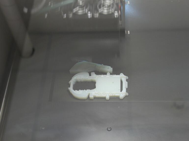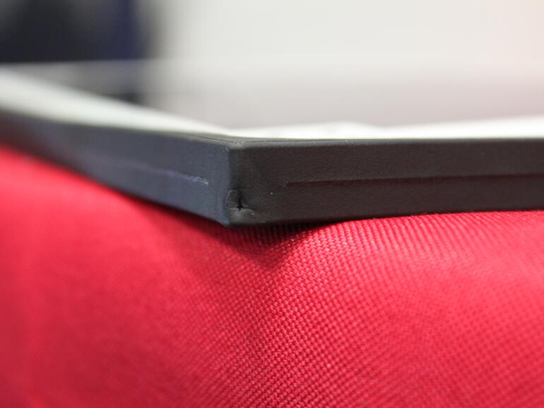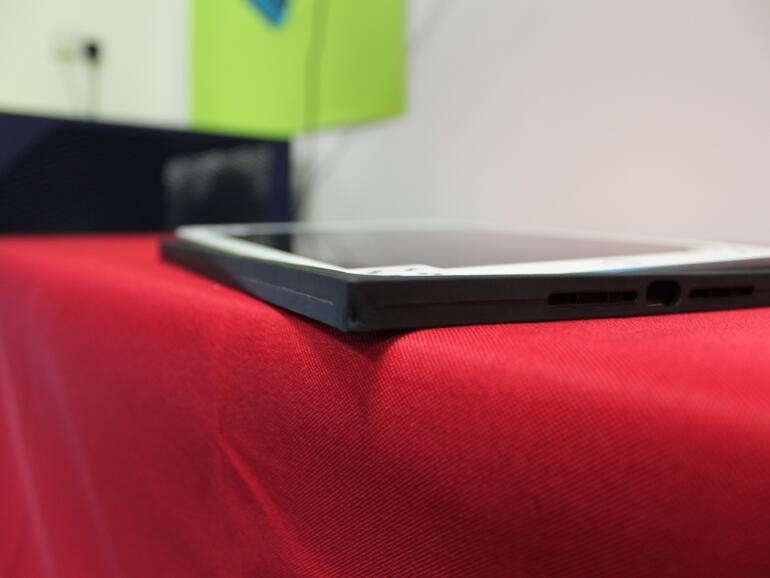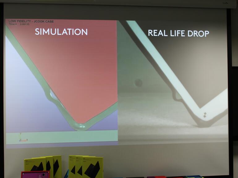 Das Äußere der iPad-Hülle haben die Material-Designer aus Polycarbonat gefertigt, was besonders strapazierfähig ist, wie der Falltest aus 1,80 Metern bewiesen hat (diesen konnten wir nicht filmen, da der Fall für unsere Kamera zu schnell ablief). Kleiner Insider-Hinweis: Über 10 iPads mussten während der Testphase daran glauben und wir wurden Zeuge als eines davon zu Bruch ging.