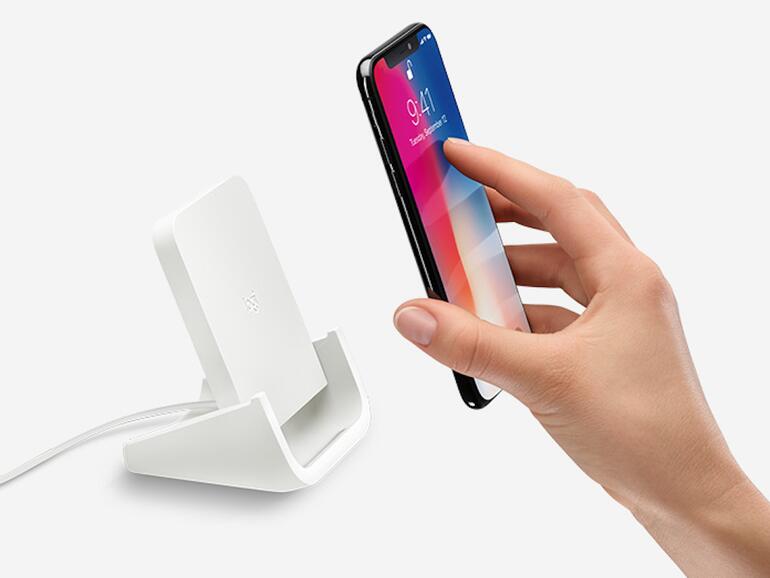 Das Design erlaubt es nicht nur dem iPhone X oder iPhone 8 drahtlos geladen zu werden, sondern kann auch das iPhone 8 Plus problemlos fassen. Durch das einzigartige Design mit den Seitenlehnen ist es möglich, dass die Geräte sowohl im Hoch- als auch Querformat geladen werden können. Die Ladegeschwindigkeit liegt bei 7,5W und ist damit am vom Apple gesetzten Limit.