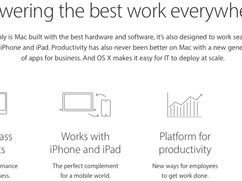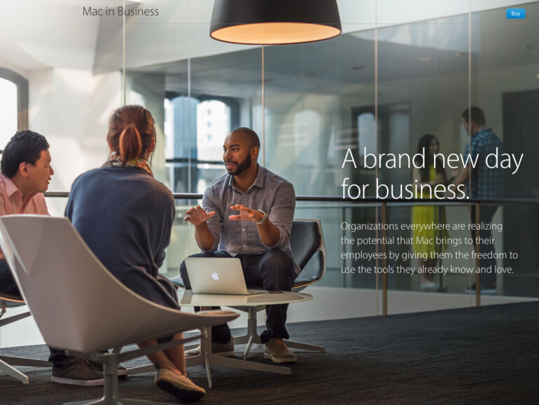 „Überall bemerken Unternehmen das Potenzial des Macs, der Angestellten die Freiheit gibt, die Werkzeuge zu nutzen, die sie bereits kennen und lieben.“ - Das von Apple gemalte Bild ist klar: Privat nutzt jeder gern das iPhone, das iPad und den Mac, wird aber üblicherweise am Arbeitsplatz mit Windows-Lösungen konfrontiert. Dieser Verschwendung von Produktivität will Apple ein Ende machen und wirbt mit einem frischen Auftritt für „Mac in Business“.