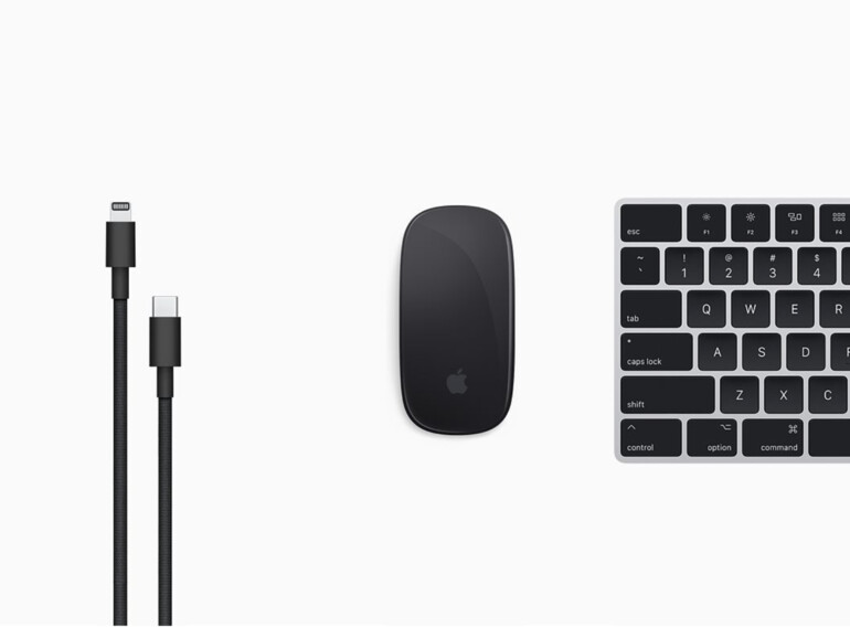 Auch wenn Apple die Eingabegeräte aktuell nur zum Mac Pro beilegt, wird erwartet, dass man die neuen Farbvarianten später auch separat kaufen können wird. Dies war bereits beim iMac Pro der Fall und dürfte dann auch hier eintreffen. Besonders interessant ist aber auch die Tatsache, dass Apple ein besonderes Ladekabel beilegt. Um die Maus, Tastatur oder das Trackpad aufzuladen, liefert Apple ein schwarzes USB-C-auf-Lightning-Kabel mit, welches ebenfalls nicht separat erhältlich ist.