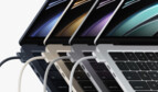 Das MacBook Air bietet eine Reihe von Lademöglichkeiten, einschließlich eines neuen kompakten 35W Netzteils mit zwei USB-C Anschlüssen, sodass du zwei Geräte gleichzeitig laden kannst. Zum ersten Mal unterstützt das MacBook Air schnelles Laden auf bis zu 50 Prozent in nur 30 Minuten mit einem separat erhältlichen 67W USB-C Netzteil.