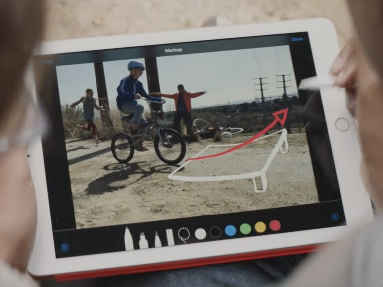 In dem neuen rund zweieinhalb minütigen Video gibt der Lehrer einer Schulgruppe die Hausaufgabe auf, sich über die Gravitation zu informieren und eine Präsentation vorzubereiten. Dabei nutzen sie die Leistung des neuen iPad natürlich aus. Die Schüler halten dazu zahlreiche Experimente mit der 8-Megapixel-Kamera fest. Von fallenden Melonen über Fahrradsprünge bis hin zur Simulation von Schwerlosigkeit wird hier allerlei geboten. Da alle aus der Gruppe über ein iPad verfügen, können sie auch schnell und einfach zusammenarbeiten und ihre Ergebnisse miteinander teilen.