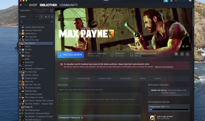 Mit macOS Catalina kehrte Apple 32-Bit-Anwendungen den Rücken. Dies betrifft zahlreiche Apps und viele der ohnehin schon wenigen Spiele. Daher hat man bislang nur wenige Optionen: Entweder man bleibt auf macOS Mojave oder muss auf einige Apps verzichten. Deutlich besser wäre es, wenn Apple einen Kompatibilitätsmodus einführt, der 32-Bit-Anwendungen ausführen kann – etwa in einer Sandbox-Anwendung.