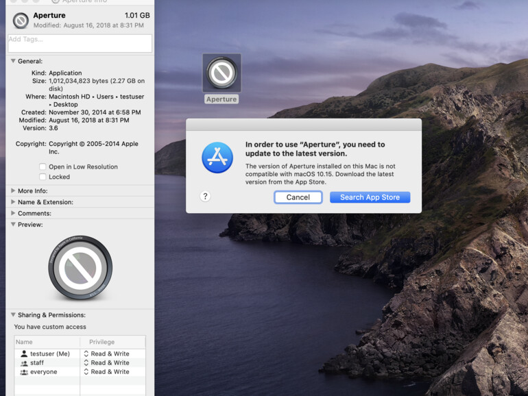 Als iOS 11 erschien, kämpften einige Nutzer mit unbrauchbar gewordenen Apps, die von Entwicklern nicht für den 64-Bit-Standard optimiert wurden. Ähnlich dürfte es aber bald auch zahlreichen Mac-Nutzer gehen, die noch immer auf alte Software und Softwareversionen setzen. Dabei wird es auch eine besondere Nutzergruppe treffen, die auch fünf Jahre nach der Einstellung von Aperture noch immer auf Apples kostenpflichtige Pro-Foto-App schwört. Mit dem Update auf macOS Catalina wird die Anwendung endgültig nicht mehr unterstützt. Darauf macht aktuell ein Reddit-Nutzer aufmerksam.