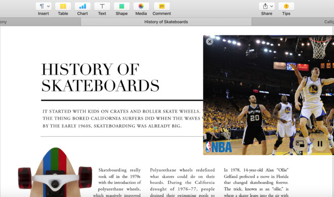 Als letzte große Neuerung versprach Apple die Einführung von systemweiten Tabs. Diese sind in Webbrowsern längst gang und gäbe und wurden später auch in Apples Finder eingeführt. Die positive Resonanz fiel scheinbar derart groß aus, dass man sich für die Ausweitung entschied. Beispielsweise lassen sich so mehrere Dokumente in Pages in nur einem Fenster ablegen und vereinfacht dabei die Übersicht.