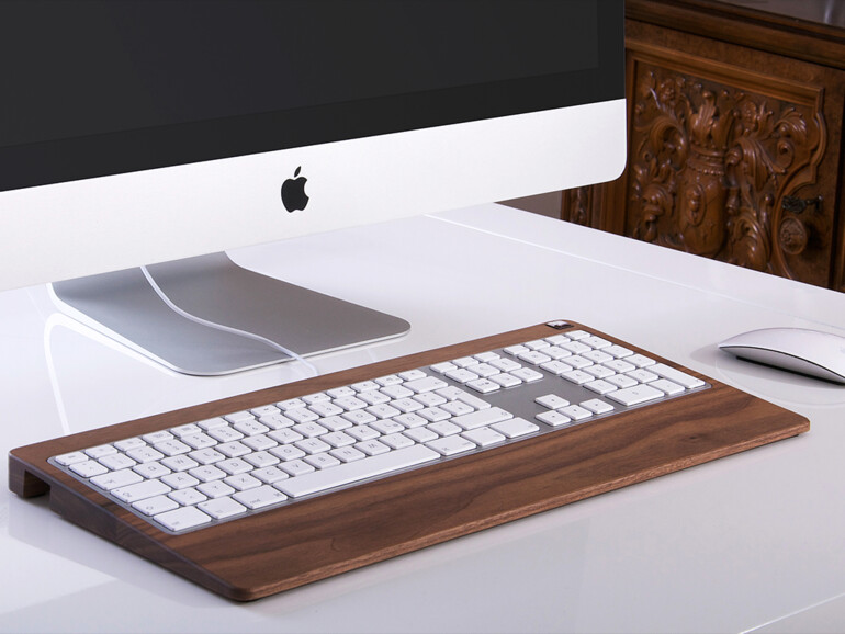 Im November 2011 als Vater-Sohn-Projekt gegründet, hat sich Woody’s heute zu einer festen Größe in der Welt der Apple-Accessoires entwickelt. Ausgangsmaterial für alle Produkte – also für die Träger für Apple-Tastaturen und -Trackpads, aber auch Docks für iPhone und iPad – ist Massivholz. Zuerst werden die einzelnen Holzlatten im Holzgroßhandel gesichtet, dann professionell miteinander verleimt, um die nötige Stabilität beim späteren Gebrauch zu ermöglichen. Im Anschluss wird das entstandene „Brett“ zugeschnitten und zum Beispiel beim Tray schräg gehobelt, sodass die markante und ergonomische Keilform entsteht. Aussparungen werden per CNC-Fräse gearbeitet, Rundungen werden geschliffen und anschließend eine dünne Naturöl-Schicht aufgetragen.