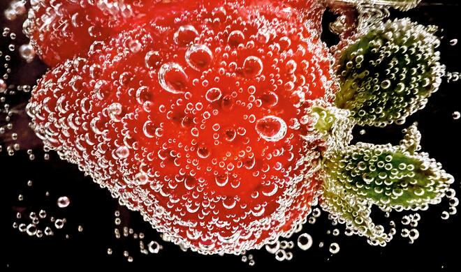 „Langsam begannen sich Blasen an der Oberfläche der Erdbeere zu bilden, sodass sich ihre Struktur vollständig veränderte. Ich war beeindruckt von dem Level an Details, die ich mithilfe der Makrofotografie festhalten konnte. Ich wählte deshalb eine Erdbeere, weil mir die leuchtend rote Farbe gefällt und sie sich so gut vom schwarzen Hintergrund abhebt. Der starke Kontrast lenkt die Aufmerksamkeit auf die Erdbeere und die Blasen und lässt es so aussehen als würde die Erdbeere im All schweben.“