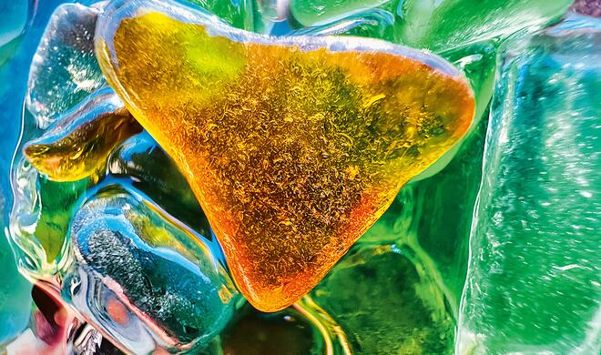 „Seeglas wird durch Tausende von Kilometern erodiert, die es um die Ozeane zu den Küsten der Welt wandert. Ich ging am Strand spazieren und genoss einen wunderschönen Sonnenuntergang und beschloss, einige dieser kleinen Seeglasstücke zu sammeln, um die Makrofotografie auf dem iPhone 13 Pro Max auszuprobieren. Es sieht so aus, als ob etwas Seltsames im Glas in der Mitte passiert – es sieht aus wie Bernstein. Ich liebe diese Struktur wirklich.“