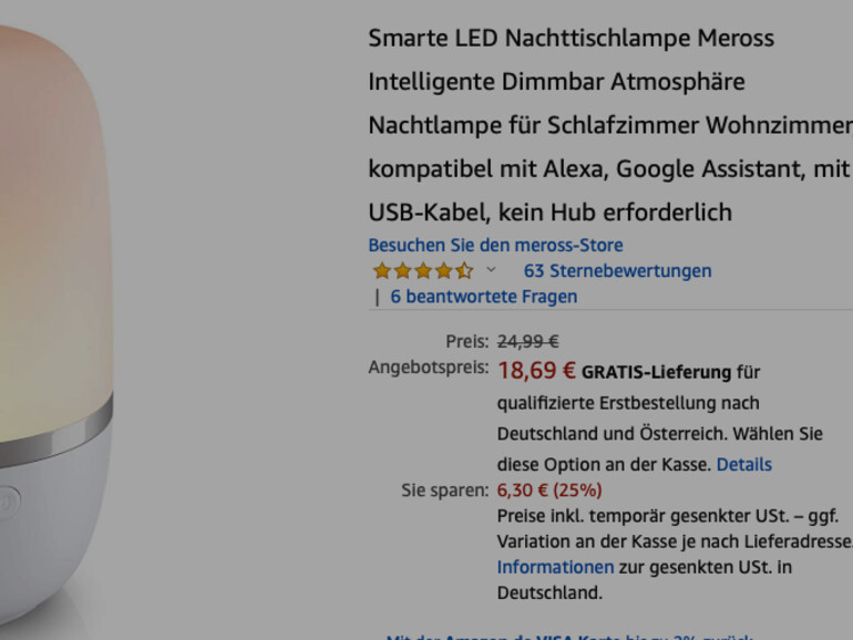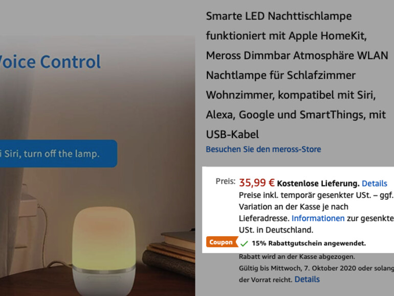 Update vom 8. Oktober: Amazon bewirbt die neue Meross Nachttisch-Lampe ohne HomeKit-Anbindung heute als Blitzangebot. Diese Version kann nur mit Alexa, Google oder der Meross-App gesteuert werden. Dafür kostet das Modell aktuell auch nur 18,69 Euro im Blitzangebot. Die neu vorgestellte Version mit HomeKit ist derzeit zudem ausverkauft! (Update Ende)