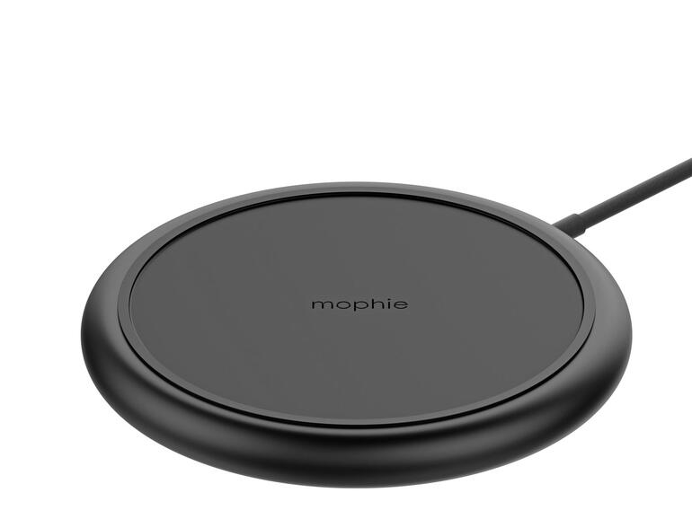 Beim Design erfindet Mophie das Rad nicht neu und setzt auf ein traditionelles Aussehen. Flach und kreisrund sieht es aus wie die meisten anderen drahtlosen Ladegeräte für Smartphones. Die gummierte Oberfläche sorgt dabei für einen sicheren Halt.