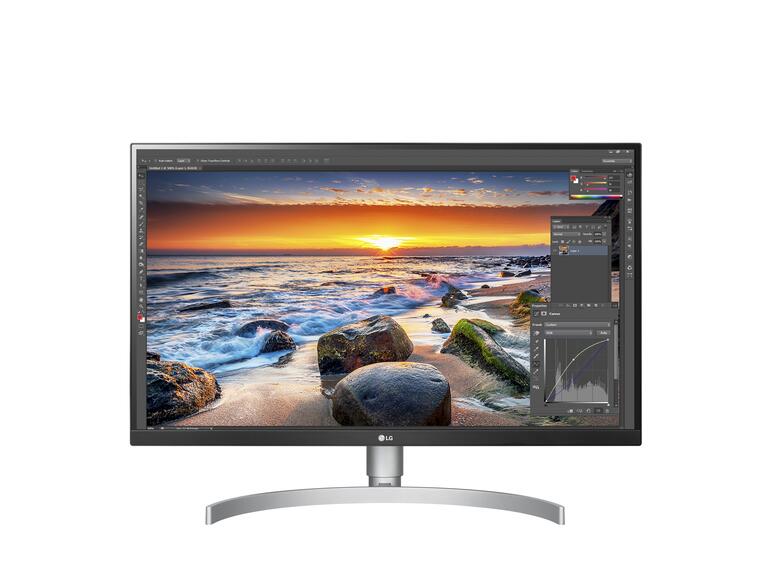 LG hat seinem 27UK850-W Bildschirm (699 Euro) einige wichtige Fähigkeiten spendiert, die im Alltag den Unterschied ausmachen. Herkömmliche Filme verwandelt der UHD 4K HDR Monitor in Videos mit HDR-Qualität. Hierfür sorgt ein spezieller Algorithmus, der Tone Mapping und Leuchtdichte verbessert. An drei Seiten ist der Bildschirm nahezu rahmenlos, mit dem ergonomischen Standfuß können Sie ihn in Höhe und Neigung optimal einstellen und mit der Pivot-Funktion um 90 Grad drehen. Mit der sogenannten Maxxaudio-Technik macht der Monitor zusätzliche Lautsprecher auf dem Schreibtisch überflüssig.