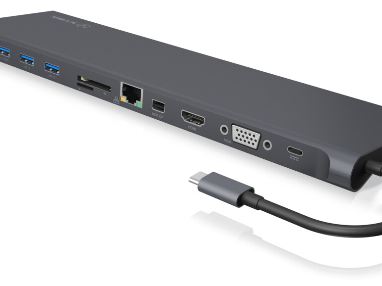 Prinzipiell ist es zu begrüßen, dass die neuen MacBooks so gut wie keine Anschlüsse mehr haben, schön schlank kommen Apples Laptops daher. Doch wer bei seiner Arbeit auf viele verschiedene Schnittstellen angewiesen ist, muss sich Zubehör besorgen. Die IB-DK2102-C DockingStation von ICY BOX (119 Euro) erledigt diese Aufgabe, ohne dass weitere Anschaffungen nötig werden. Im hochwertigen Aluminiumgehäuse finden Sie drei Videoschnittstellen (HDMI, Mini DP und VGA), drei USB-A 3.0 Anschlüsse, eine Schnittstelle vom Typ USB-C, einen 3,5 Millimeter Kombi-Audio Anschluss und sogar SD und microSD Kartenleser.
