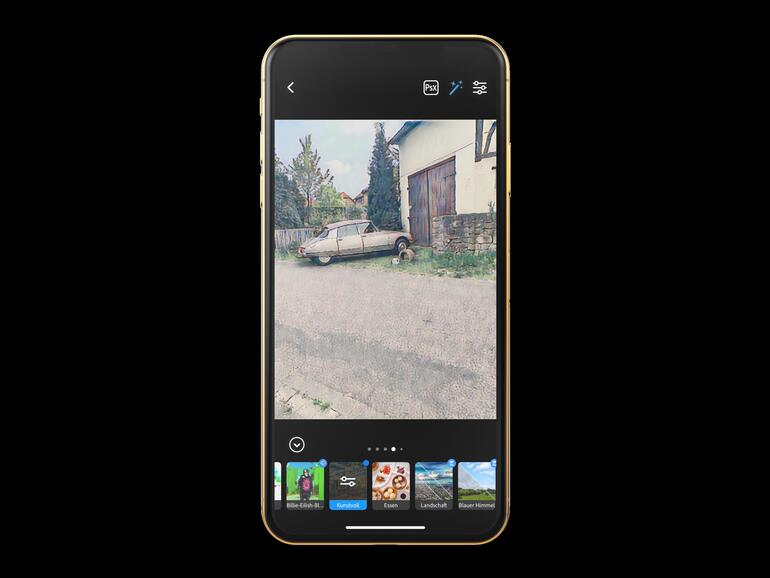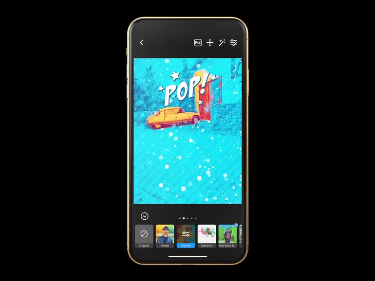 - Du wählst das Foto aus, und Photoshop Camera weiß, mit welchen Effekten das beste Ergebnis erzielt wird. Du musst dir also keine Gedanken um die richtige Beleuchtung oder den Fokusbereich machen.
