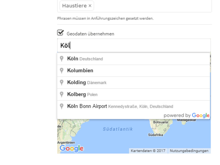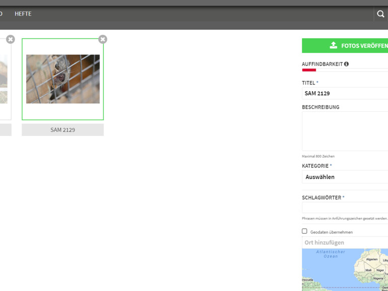 Ein neuer Balken zeigt Ihnen an, ob noch etwas getan werden kann, um die Auffindbarkeit des Bildes in der Galerie zu verbessern.