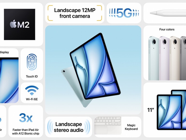 Apple stellt im ersten Event des Jahres wie erwartet das neue iPad Air vor und lässt sich dabei vom iPad Pro inspirieren: Denn das iPad Air 6 kommt jetzt in zwei Größen – 11 Zoll und 13 Zoll und löst sich damit auch von bekannten Größen des vorherigen iPad Pro. Damit erfährt das iPad der Mittelklasse das erste Mal ein Update seit März 2022.