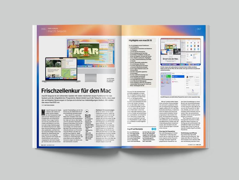 macOS Sequoia - Frischzellenkur für den Mac: macOS Sequoia ist ein lohnendes Update mit vielen nützlichen neuen Funktionen für das System und die mitgelieferten Programme. Daran ändert auch die Tatsache nichts, dass zwei der wichtigsten Neuerungen in Europa erst einmal nur Ankündigungen bleiben. Wir stellen das neue macOS 15 vor.
