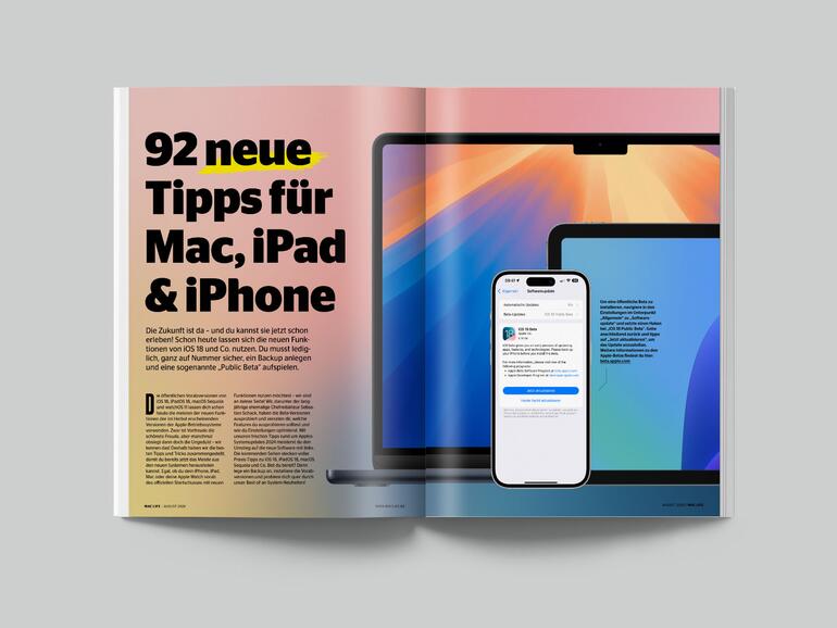 98 neue Tipps für Mac, iPad & iPhone: Die Zukunft ist da – erlebe sie jetzt! Mit den brandneuen Funktionen von iOS 18 und Co. kannst du schon heute loslegen. Einfach ein Backup erstellen, die Public Beta installieren und loslegen!