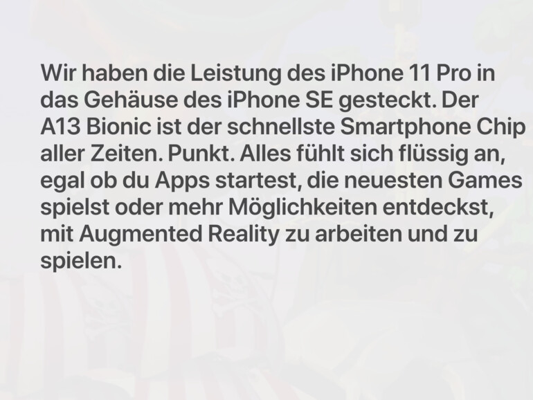 Würde Apple den A13 in dem kleinere SE-Gehäuse auf volle Touren bringen, könnte sich das negativ auswirken, denn er kann nicht so gut gekühlt werden wie in einem iPhone 11 Pro Max. Auch die Akku-Performance käme nicht mehr hinterher und würde spürbar nachlassen. Diese Anpassung dient damit der optimierten Leistungsmöglichkeit des neuen iPhone SE.