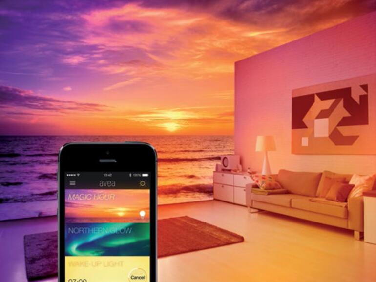 Die Einrichtung von Avea ist kinderleicht: Lampe einschrauben, App bei iTunes laden, starten. Avea lässt sich ohne Bridge direkt vom iPhone aus steuern. Die App unterstützt bis zu zehn Aveas. Elgato, Halle 15, Stand 222.