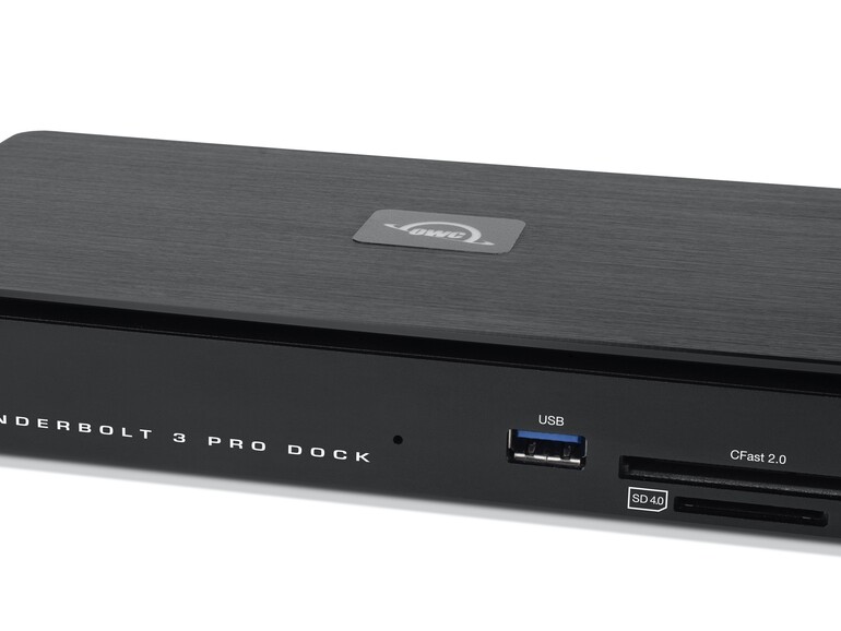 Der bekannte Mac-Zubehörhersteller OWC hat ein weiteres Thunderbolt-3-Dock vorgestellt. Das neue Thunderbolt 3 Pro Dock ist mit einer Vielzahl an Anschlüssen ausgestattet, die in der Regel bei den Docks nicht üblich sind, wie etwa ein eSATA-Port oder der CFast-Kartenleser. Zusätzlich gibt Ihnen das neue Zubehörteil auch einen 10 Gigabit Ethernet Anschluss, drei USB-3.1-Ports, zwei Thunderbolt-3-Steckplätze einen DisplayPort 1.2 sowie einen abgesicherten Stromanschluss, der versehentliches Entfernen verhindern soll.