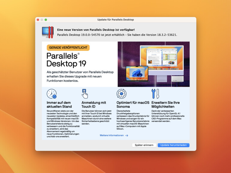 Parallels Desktop 19 unterstützt macOS Sonoma und Touch ID