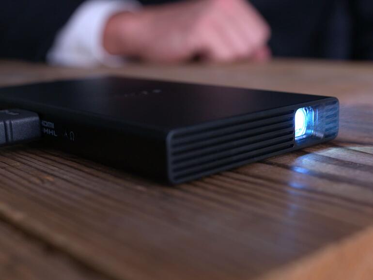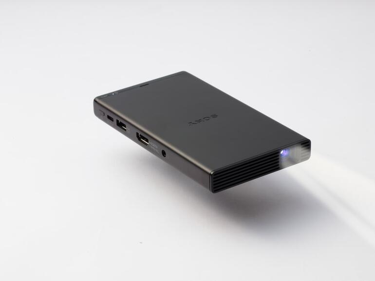 Zugegeben, der Sony MP-CD1 ist kein Präsentationsbeamer, denn dafür ist er nicht hell genug, aber in abgedunkelten Räumen ist er für Filme, Serien und Sport gut geeignet. Der Taschenprojektor kann überall hin mitgenommen werden und lässt sich über HDMI an mobile oder stationäre Geräte anschließen. Eine Akkuladung soll den Betrieb über 2 Stunden ohne Stromquelle möglich machen. Das dürfte für die meisten Anwendungen reichen. Und zur Not hängt man eine Powerbank an das Gerät, das im Betrieb geladen werden kann. Über USB-C wird der Akku wieder geladen.