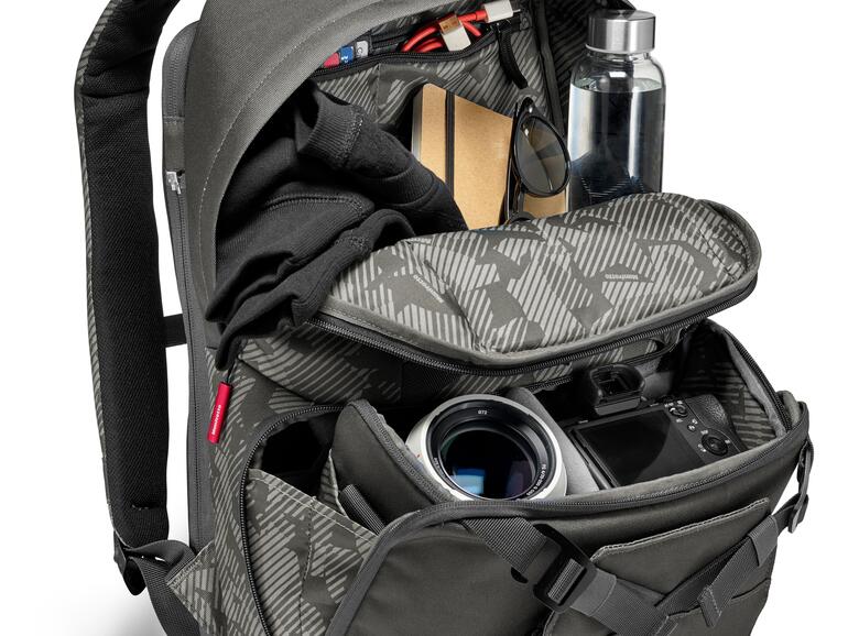 Dürfte man lediglich ein Adjektiv für die Noreg Kollektion von Manfrotto verwenden, so wäre dies wohl variabel. Die insbesondere für vielreisende und stilbewusste Fotografen konstruierte Kamerataschen-Familie besteht aus einem modular konzipierten Transport-System mit mehreren Einheiten, die Sie auch einzeln nutzen können. Zur Hälfte für persönliche Gegenstände und im unteren Teil für fotografische Accessoires gedacht, erhalten Sie den Noreg-Rucksack (179 Euro) mit einem speziellen Kamera-Case, das sich hinter einer aufklappbaren eigenen Öffnung verbirgt und dank integriertem Schultergurt als separate Umhängetasche verwendbar ist.