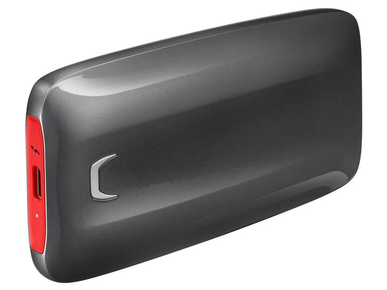 Alles an dieser hoch performanten SSD ist sportlich und extrem kräftig. Angefangen bei ihrem schnittigen Design, überzeugt Samsungs Portable SSD X5 (ab 419 Euro) durch Geschwindigkeit und Kapazitäten, die besonders High-Tech-Profis und Kreative schätzen werden. Schnell und sicher haben Sie hier Zugriff auf Ihre hochauflösenden Daten. Zu verdanken haben Sie Datenübertragungsraten von bis zu 2.800 Megabyte pro Sekunde der implementierten Thunderbolt 3- und NVMe-Schnittstelle und Samsungs V-NAND Speichertechnologie. Selbst wenn es unterwegs mal etwas rauer wird, müssen Sie um die Standfestigkeit der kompakten SSD X5 nicht fürchten. Ein langlebiges und sehr leichtes Vollmetallgehäuse aus Magnesium verfügt über eine innere Verstärkung und kann sogar Fallhöhen bis zu zwei Metern überstehen. Um die Sicherheit Ihrer Daten zu gewährleisten, ist eine optionale Datenverschlüsselung mit Passwortfunktion nach AES-Standard integriert, der sogenannte Dynamic Thermal Guard überwacht zudem die Temperatur des Gerätes.