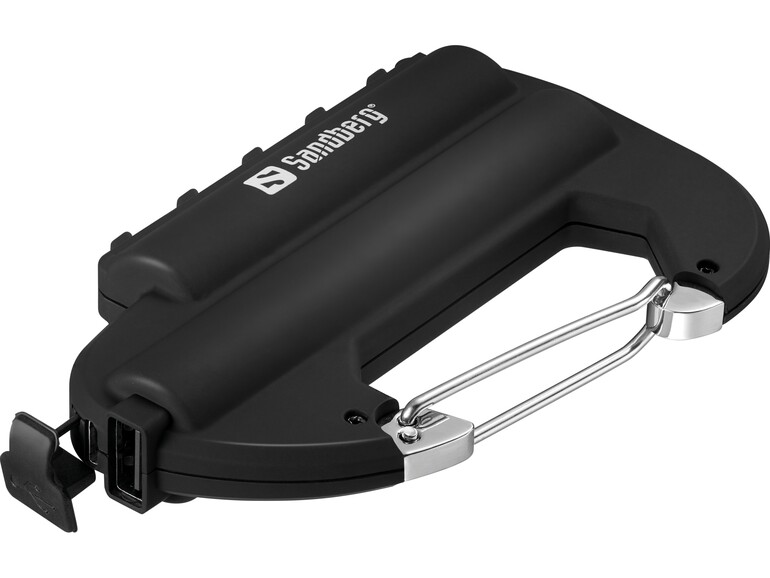 Die Powerbank von Sandberg ist kaum als solche erkennbar, denn es handelt sich hier um einen Karabinerhaken, der groß genug ist, um ihm beispielsweise am oder im Rucksack oder der Handtasche zu befestigen. Das Gehäuse verfügt über eine robuste Stahlschelle, als wäre sie zum Klettern oder ähnlichen Aktivitäten gemacht. Davon raten wir allerdings ab - es ist natürlich möglich an dem Karabiner auch noch andere Gegenstände zu befestigen, aber zum Klettern ist er nicht gedacht.