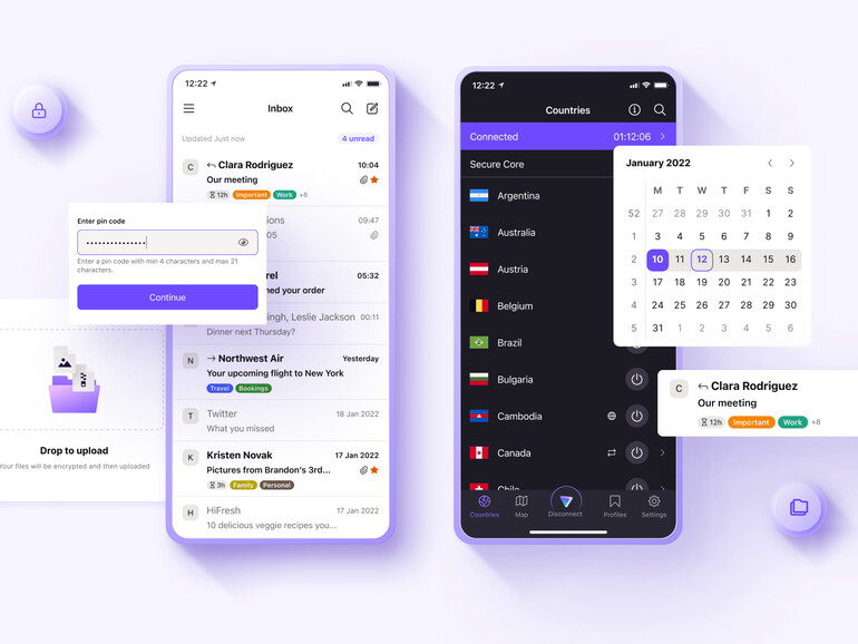 Der neue einheitliche Dienst wird über Proton.me zugänglich sein, entsprechend ändern sich auch die E-Mail-Adressen für neue Kunden beziehungsweise Benachrichtigungs-E-Mails von Proton selbst. Wer eine protonmail.com-Adresse hat, behält sie auch. Angeboten wird dabei mehr als nur ein Mail-Dienst, sondern auch ProtonDrive als verschlüsselter Speicherplatz, ein Kalender und ein VPN-Dienst.