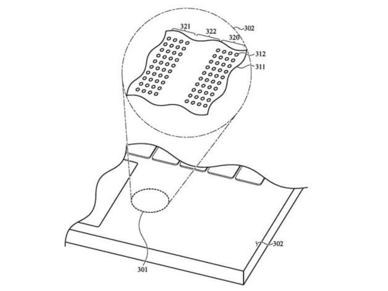 Die Lösung ist bestechend einfach, wie die vom US-Patent- und Markenamt veröffentlichte Patentanmeldung mit dem Titel "Portable electronic device having an integrated bi-sensor" (auf Deutsch: "Tragbares elektronisches Gerät mit integriertem Bi-Sensor") zeigt. Apple will kleine Bohrungen auf der Handballenauflage nutzen, um dort Licht hindurchzuschicken, das auf der Hand des Nutzers landet, von dort reflektiert und ebenfalls durch kleinste Öffnungen an der Oberfläche des Notebooks aufgefangen und im inneren mit Sensoren analysiert wird.