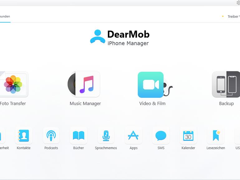 Die Software verfügt über zahlreiche Verwaltungsfunktionen, z. B. Verwaltung von Kontakten, Kalendern, Podcasts, Büchern, Apps, SMS, Favoriten sowie Dateien auf dem Mac-Gerät.