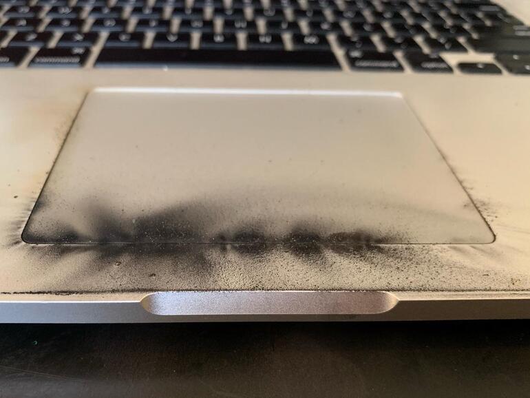 Das Notebook fing zwar nicht wirklich Feuer, doch es rauchte und dampfte eine Zeitlang vor sich hin, was auch für schwarze Ablagerungen auf der Außenseite in der Nähe der Tastatur und des Touchpads sorgte. Außerdem roch das Notebook scheußlich nach Chemie und einen kleinen Knall gab es auch. Zum Glück könnte man sagen, denn dadurch wurde Gagne überhaupt auf den Vorfall aufmerksam. Nach einem erfolgreichen Löschversuch musste der Designer allerdings feststellen, dass sein Notebook unbenutzbar geworden ist.