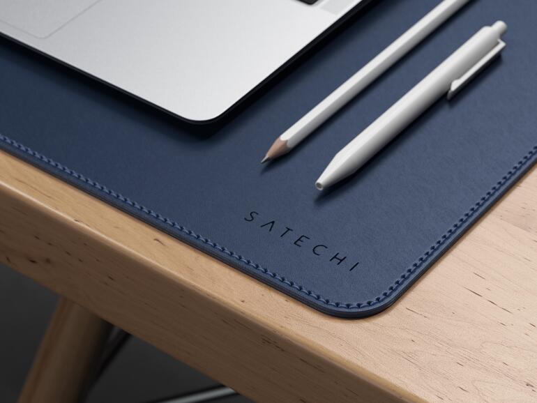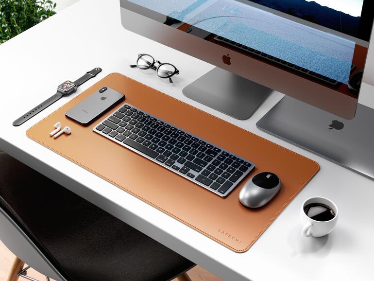 Zusätzlich zur neuen M1 Wireless Mouse kündigte Satechi auch die Schreibtischunterlage Eco-Leather Deskmate an. Sie eignet sich perfekt als Unterlage für Ihre Tastatur und Maus, sodass Sie gar kein separates Mousepad benötigen. Die Unterlage besteht für optimale Beständigkeit aus künstlichem Polyurethan-Leder, welches Sie in Schwarz, Braun oder Dunkelblau bestellen können. Die Fläche ist 58,42 x 30,99 cm groß und bietet damit ausreichend Platz.
