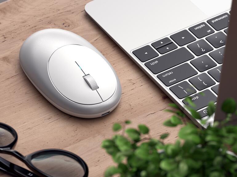 Mit einem modernen Aluminiumgehäuse ausgestattet macht die Satechi M1 optisch eine gute Figur. Damit sie auch zu Ihrem Mac passt, bietet der Hersteller die Maus in den Farben Silber, Space Grau, Gold und Roségold an. Aufgrund ihrer symmetrischen Bauart eignet sie sich sowohl für Links- als auch Rechtshänder. Verbunden wird Sie übrigens via Bluetooth 4.0 und kann auch während des Aufladens weiter verwendet werden, da sich der USB-C-Anschluss an der Frontseite der Maus befindet. Ein USB-C-auf-USB-A-Kabel liegt der M1 Wireless Mouse bei.