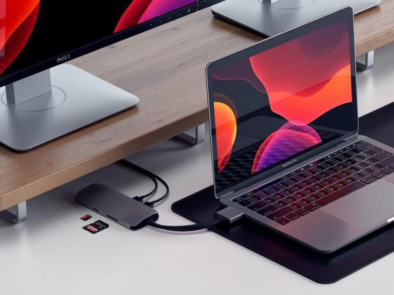 Der neue Adapter, der von Satechi vorgestellt wurde, umfasst zwei HDMI-Ausgänge. An einem kann ein 4K-Display mit 60 Hertz betrieben werden, am anderen eines mit 30 Hertz. Zudem bietet der Adapter eine weitere USB-C-Schnittstelle an, über die Geräte geladen werden können.