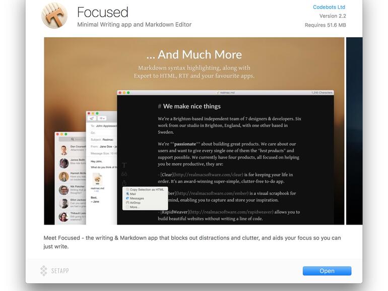 Im Sortiment enthalten sind so populäre Apps wie RapidWeaver, CleanMyMac, Ulysses, Blogo, CodeRunner, Pixa, Focused, iMazing, Marked, Screens, Pagico, iStat Menus und viele mehr. Der Dienst will maximal 300 Apps anbieten, weil sonst die Übersicht und Qualität leiden würde, meinen zumindest die Entwickler. Das klappt natürlich nur, wenn genügend Anwender mitmachen.