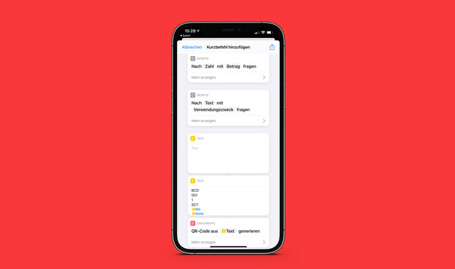 Man sieht immer öfter auf Rechnungen QR-Codes. Hinter diesen verstecken sich nicht selten digitale Überweisungsträger, die du im Handumdrehen mit einer Banking-App einlesen kannst. Mit dem Shortcut „Girocode“ kannst du selbst einen solchen QR-Code erstellen, um diesen zu teilen.