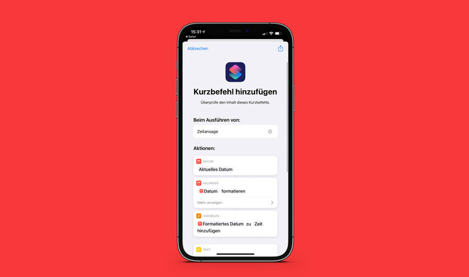 Hinweis: Unter „Einstellungen > Kurzbefehle“ muss die Option „Nicht vertrauensw. erlauben“ aktiviert sein.